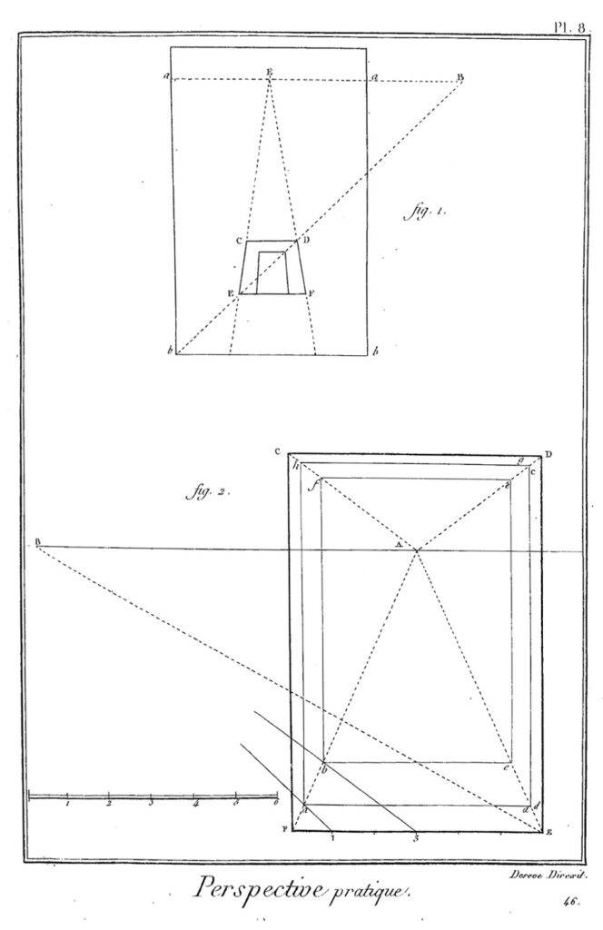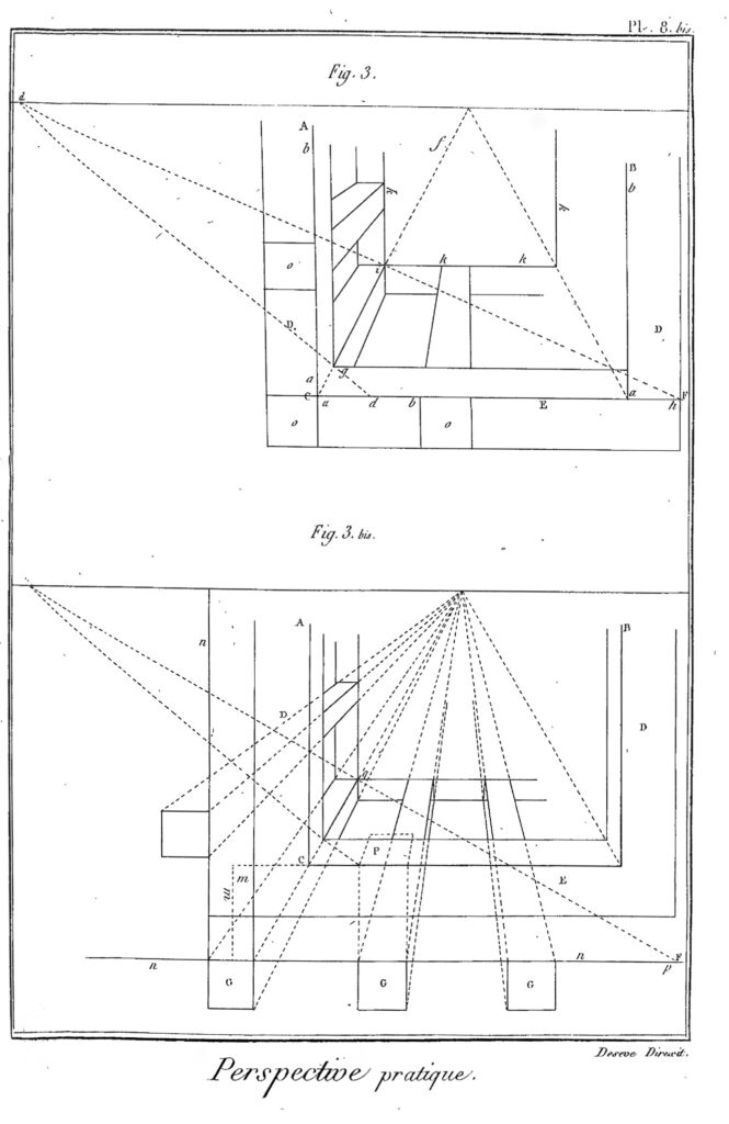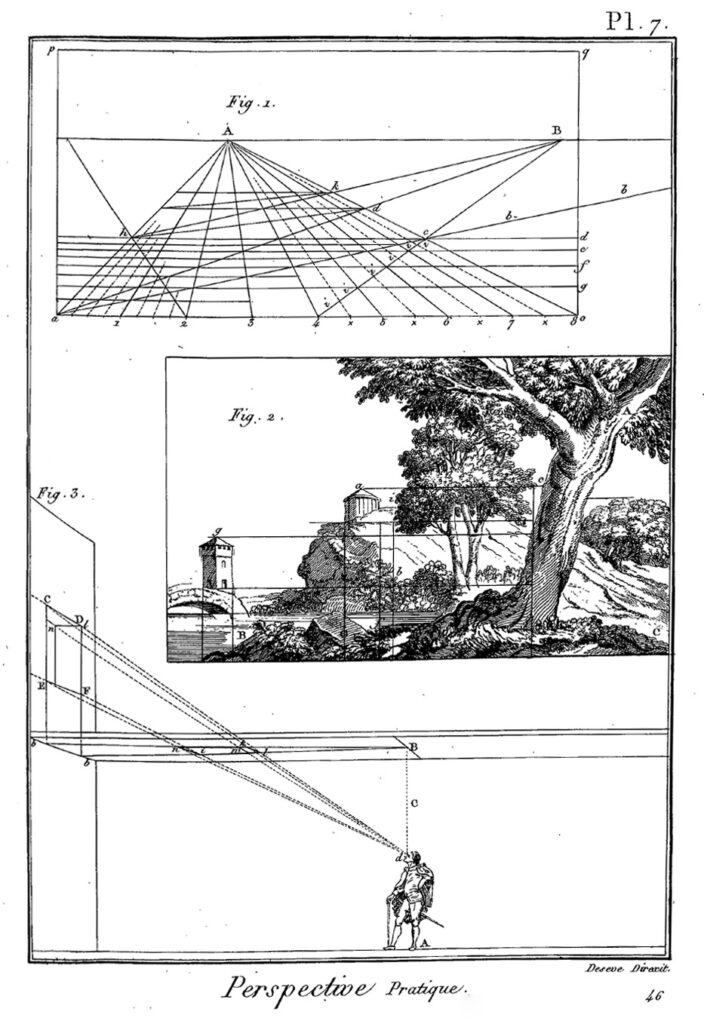- For the text on Principes de la perspective des Plafonds, see Claude-Henri Watelet – Pierre Charles Levesque (edd.), Encyclopédie Methodique. Beaux-Arts II, Paris – Liège [Charles-Joseph Panckoucke – Clément Plomteux] 1791, pp. 733–734. ↩︎