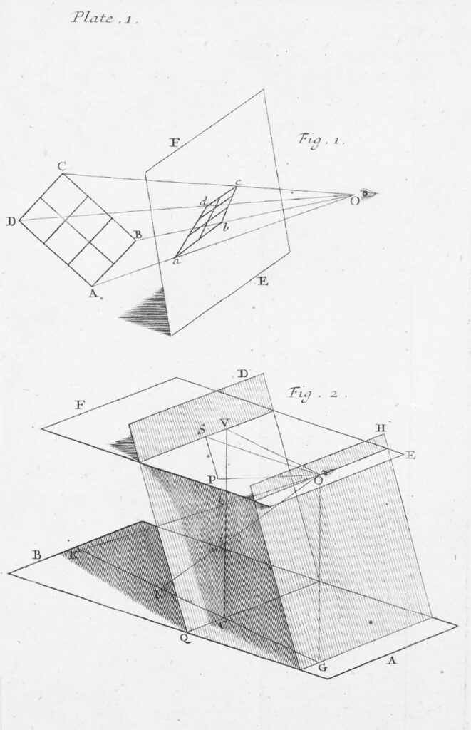 Brook Taylor, Linear Perspective: Or, a New Method of Representing justly all manner of Objects As they appear to the Eye in all Situations. A work necessary for Painters, Architects, &c. to Judge of, and Regulate Designs by, London [Robert Knaplock] 1715.